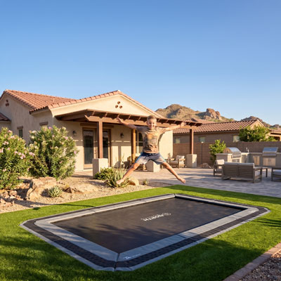 The Jump Shack has five star rated in-ground trampolines for any backyard size, and they fit in easily with any type of landscape. With safety and durability in mind, each in-ground trampoline is manufactured with the highest quality materials to ensure long lasting fun for all ages. We also have Arizona in-ground trampoline installation contractors who can make sure it is properly incorporated into the landscape of your backyard.